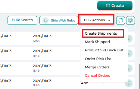 Step 4: Click on Bulk Actions and choose Create Shipments.