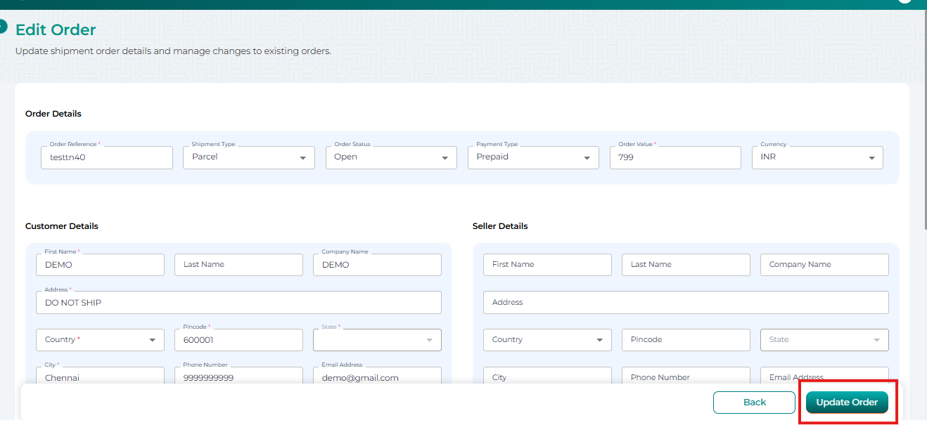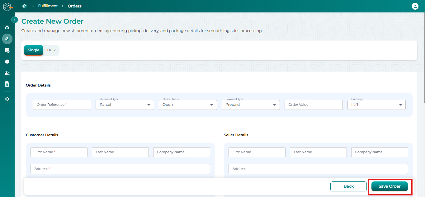 Step 4: You will be redirected to the Create Order page. Enter all the required details and click on Save Order.