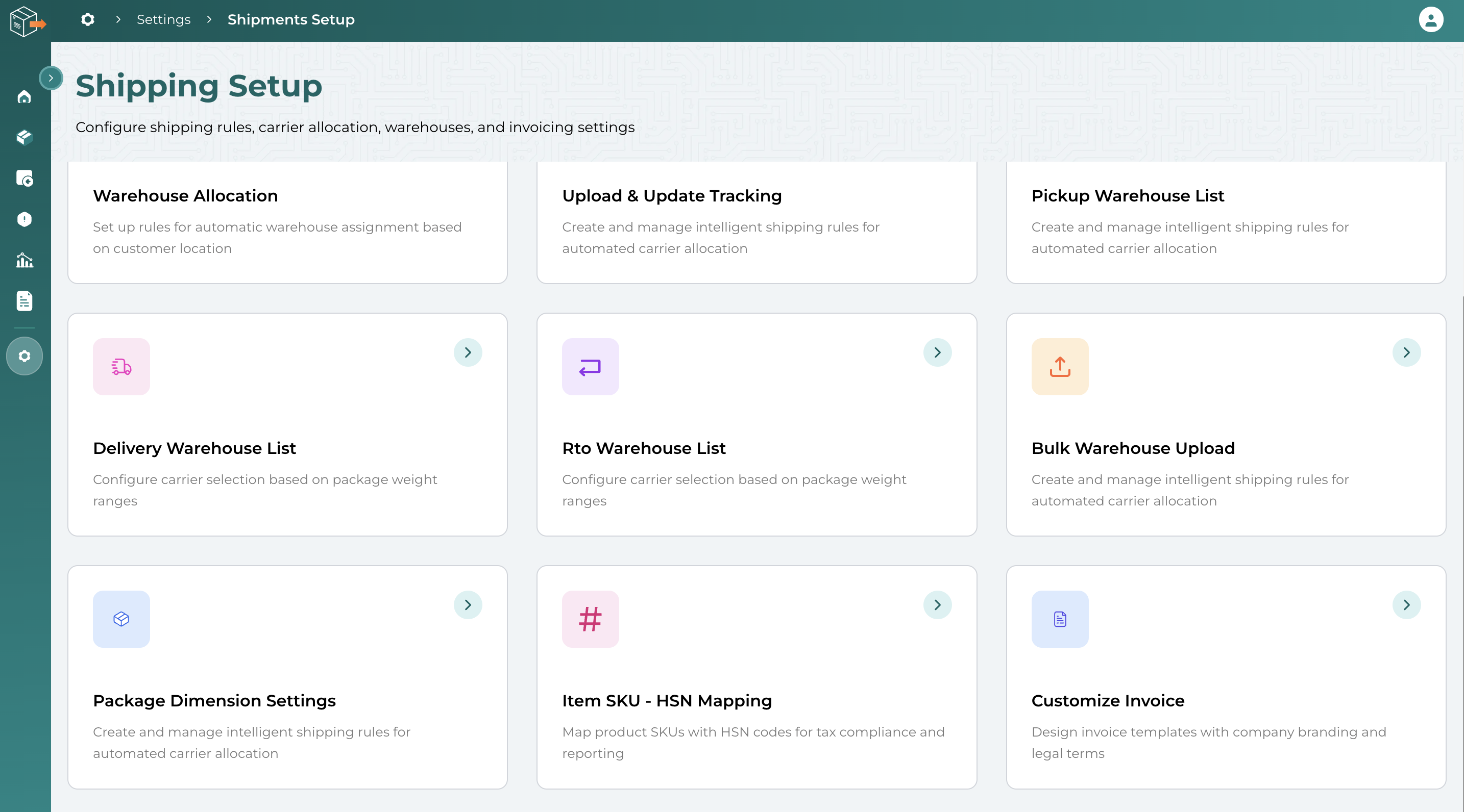 This article helps you to set up your Warehouses in eShipz. Please follow the below instructions - Step 1 : Login to your eShipz account Step 2 : Dashboard > Click on Settings > Click on Pickup warehouses or Delivery Warehouses option. The process ...