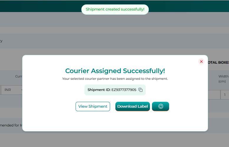 Step 6: The shipment will be created successfully, and a confirmation message will be displayed.