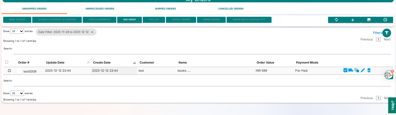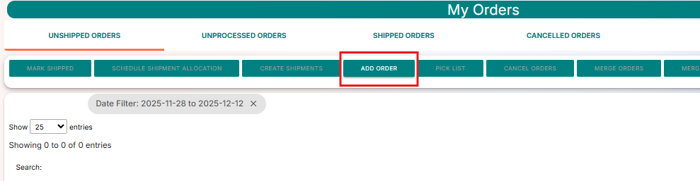 Now, The order will now be saved and will appear on the Orders → Unshipped page.