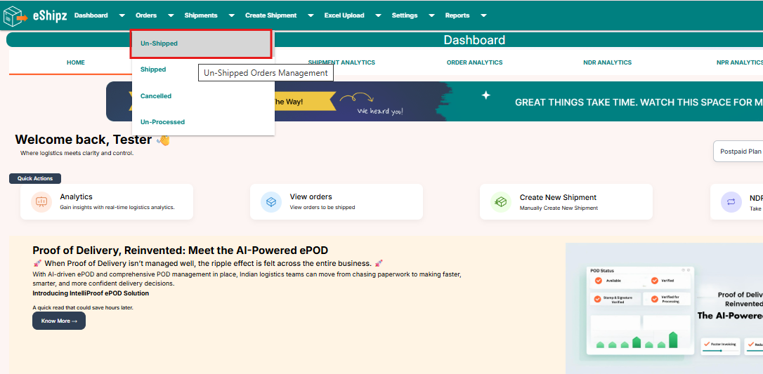 This Video guide will help you in How to process order for dispatch from unshipped order with eShipz. SAAS Shipping Application that provides Best Pre & Post Shipping Experiences for Brands and Enterprise Customers. Step 1. Sign into your eShipz ...
