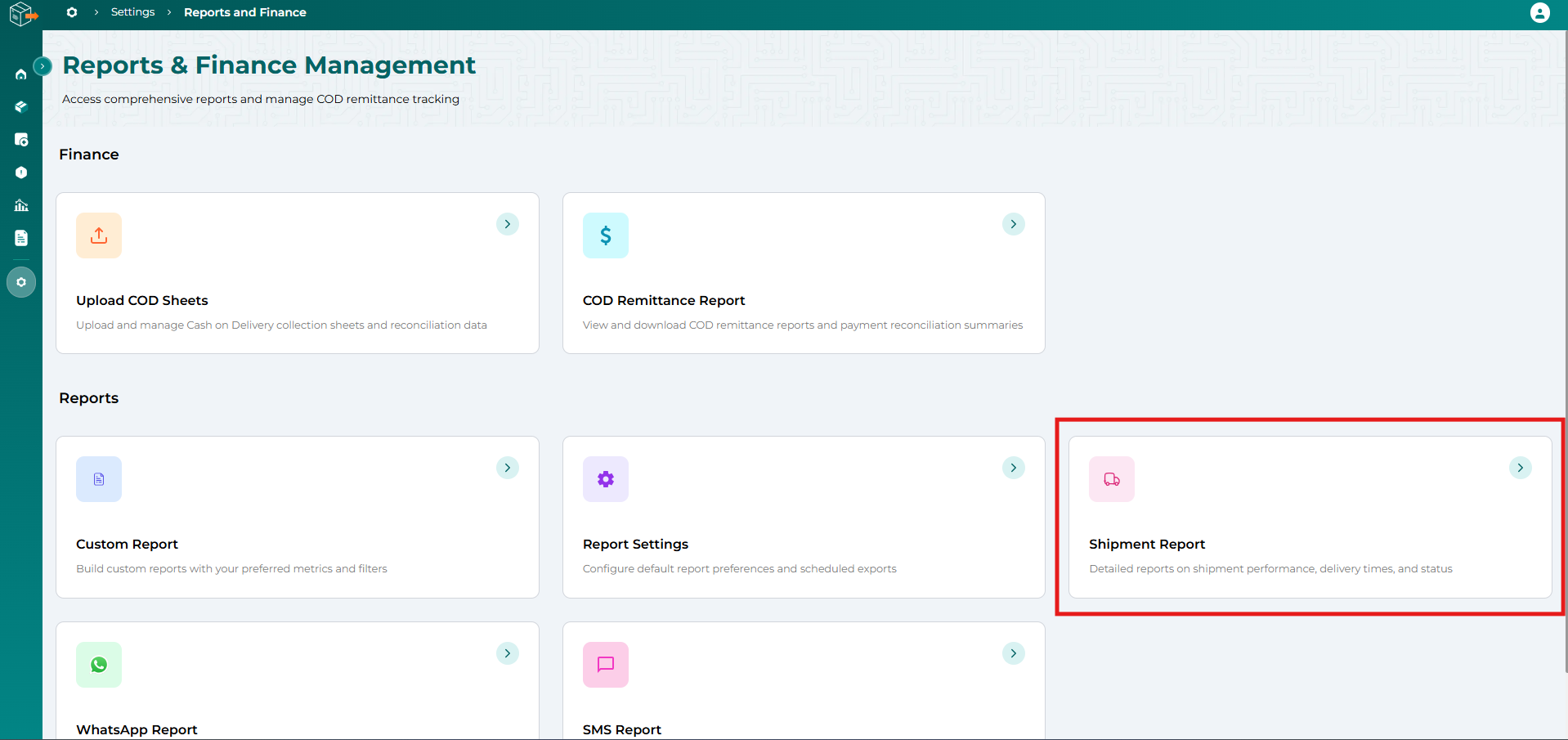 Step 3: Click on reports and finance.