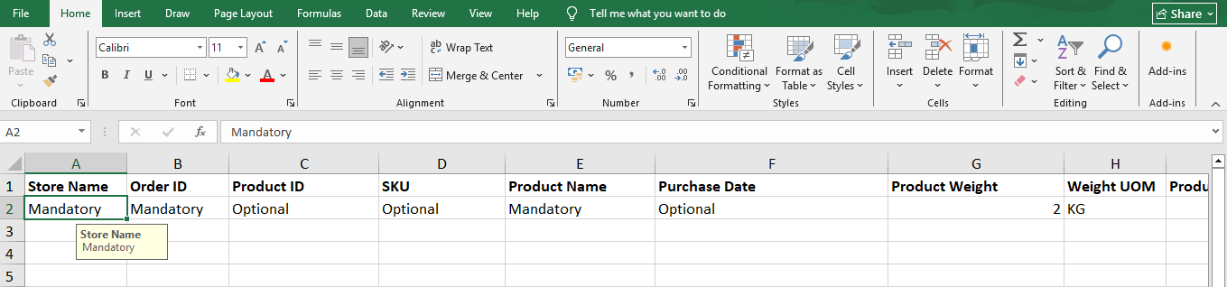 How to Create and Map your own Excel format for Order/Shipment Bulk Upload?