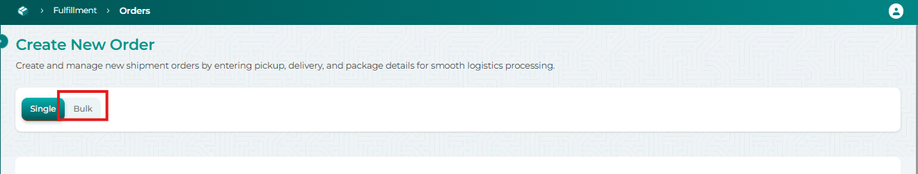 Step 4: You will be redirected to the Create Order page, click on the Bulk option.