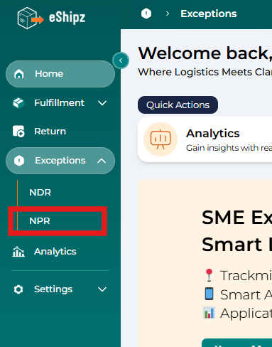 This article explains how to manage NPR (Non-Pickup Report) shipments in the New eShipz UI.