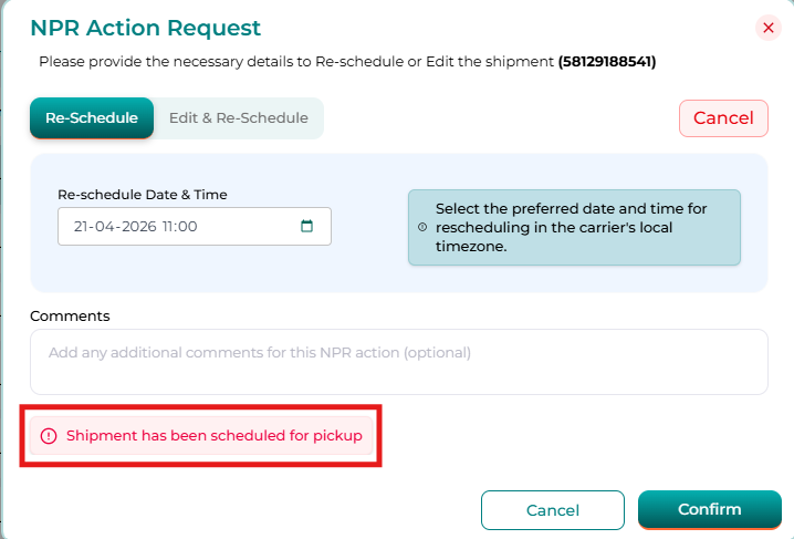 The NPR section gives you complete visibility of shipments that are under pickup exception due to various pickup issues. It helps you:
