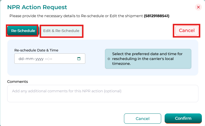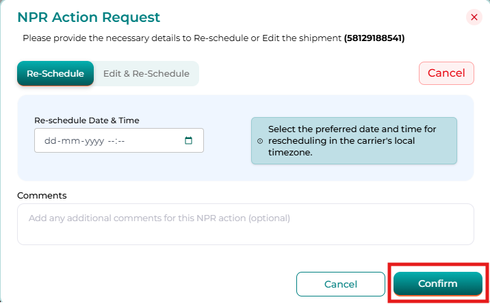 The NPR page provides multiple filters and tabs to help you manage shipments efficiently.