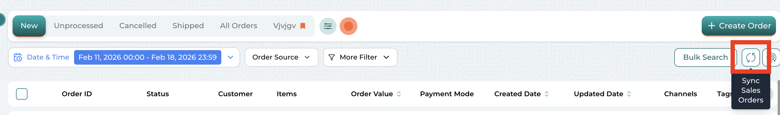 On the Orders page, click the Refresh button (located on the top right corner).