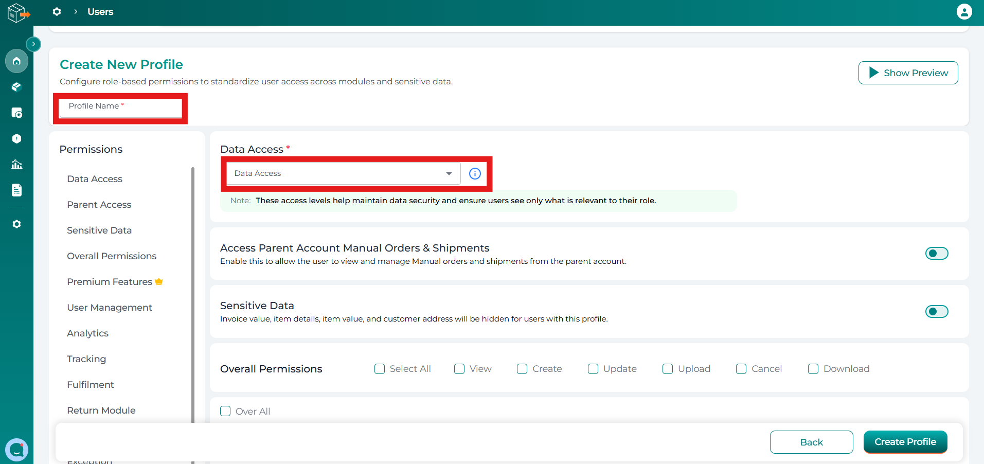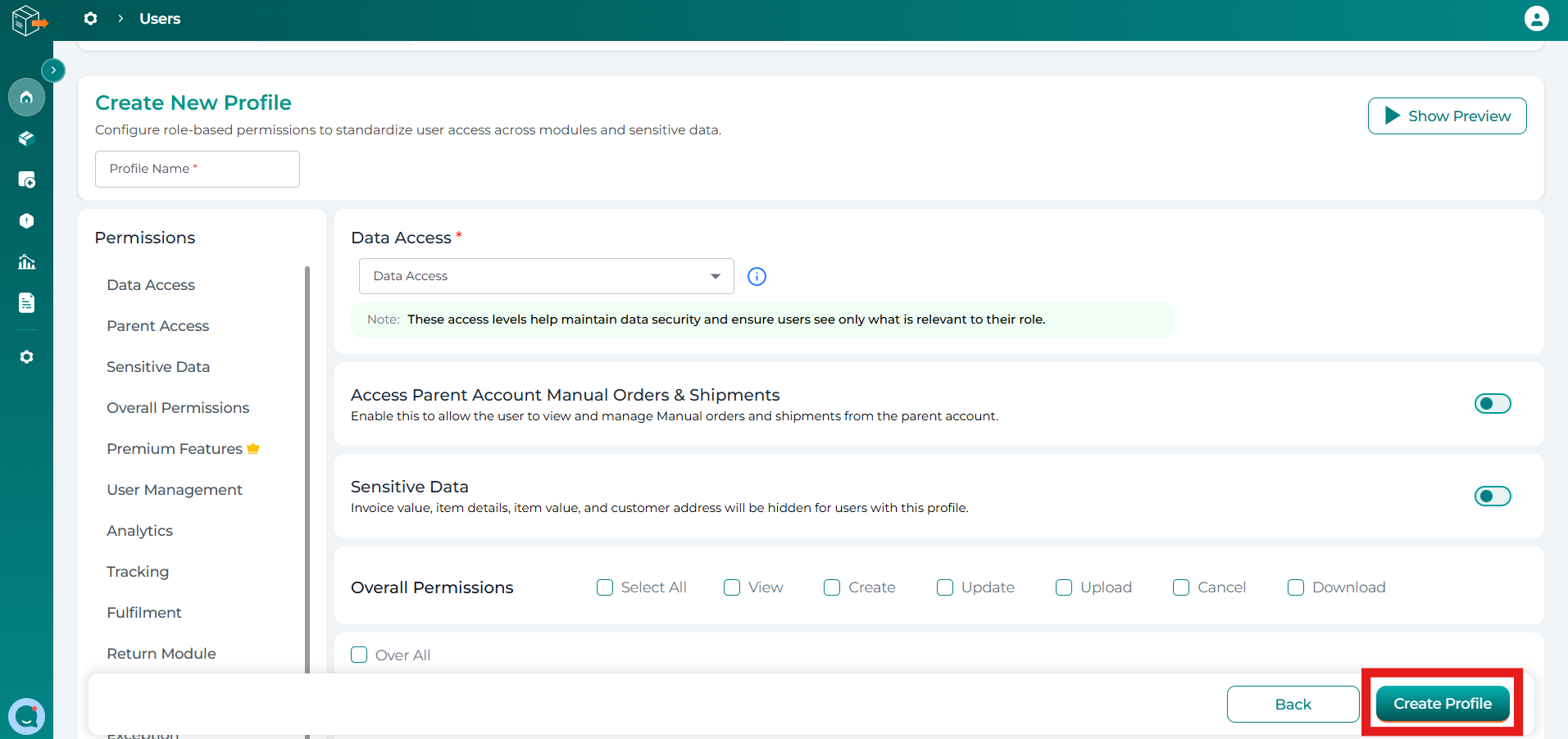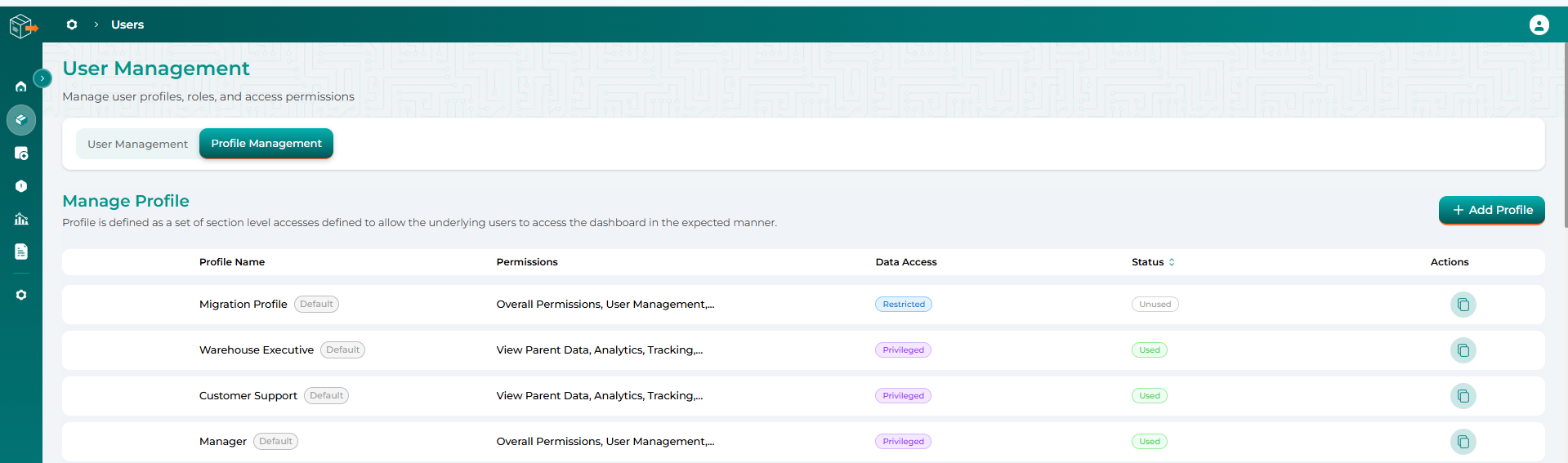 Note: Ensure that the appropriate access and permissions are assigned while creating a profile to maintain data security and operational efficiency.