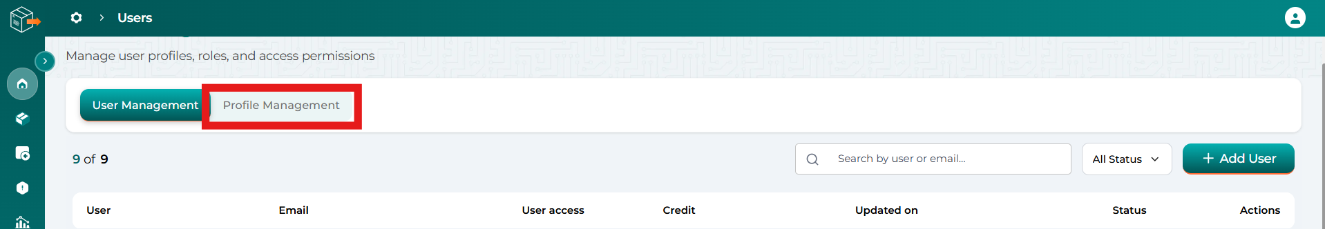 - Navigate to Profile > Manage User