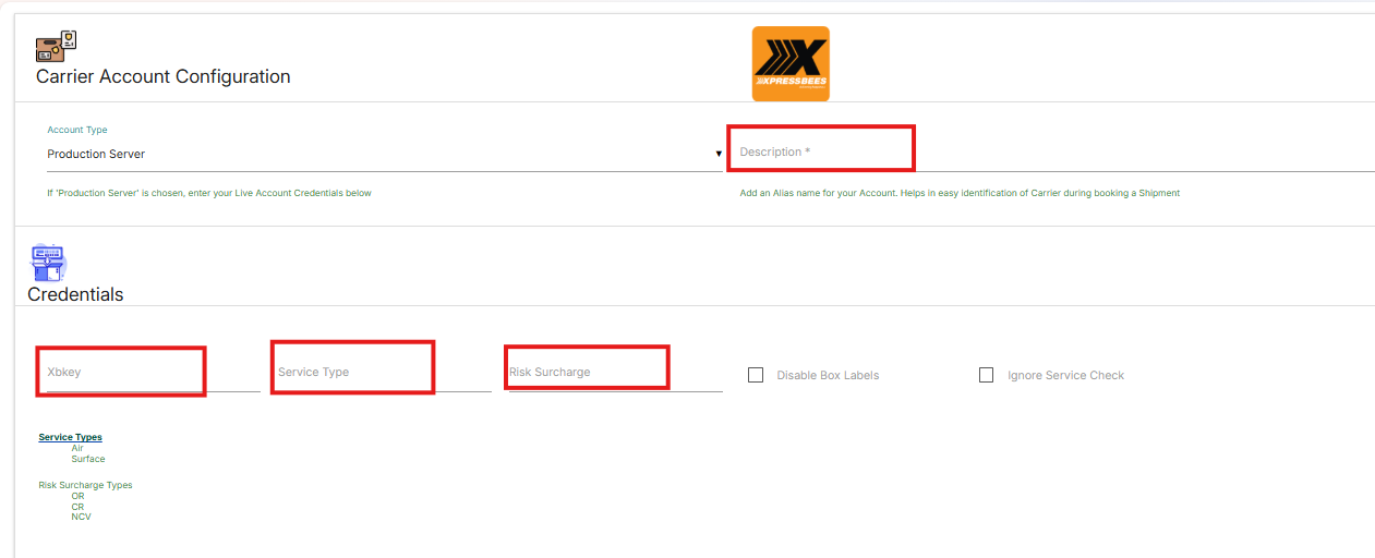 Note: The credentials will be provided by the Xpressbees carrier team.